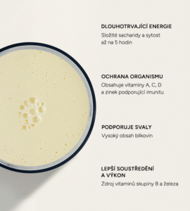 Stačí smíchat obsah sáčku s mlékem nebo vodou. Pokrm skvěle chutná také s oblíbeným ovocem.